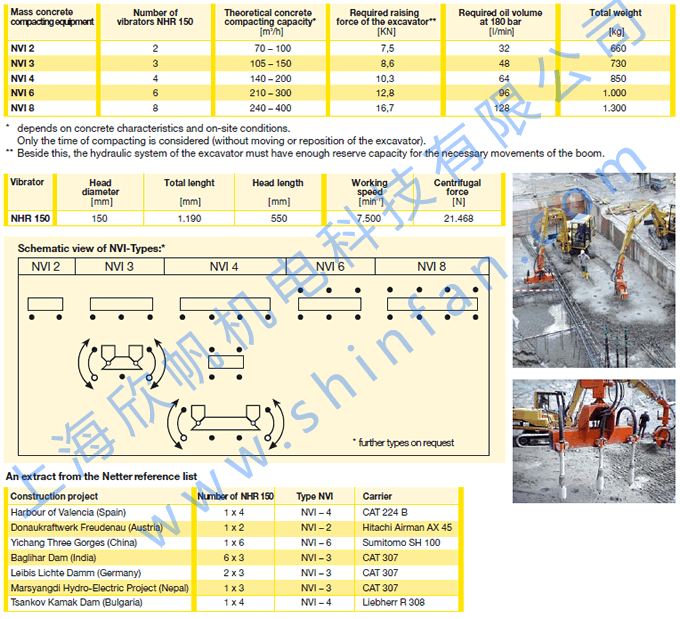 大塊混凝土壓實(shí)系統(tǒng)與NETTER NVI液壓 插入式振搗器NHR 150 ,壓實(shí)粗粒度的大體積混凝土 對(duì)于安裝于液壓挖掘機(jī)和裝載機(jī)