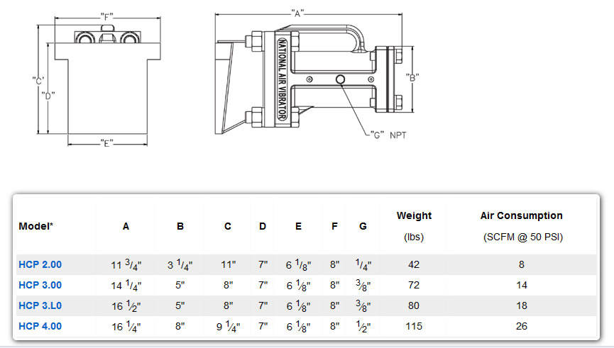 NAVCO manufactures a complete line of portable pneumatic hopper car vibrators for railcar and other portable industrial applications. The NAVCO HCP railcar vibrator is designed to provide portable, reliable and effective performance in difficult applications and severe environments. The NAVCO HCP ensures railcar unloading is an efficient and safe process.